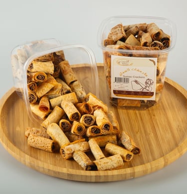 Wholesome baked crackers infused with traditional zaatar spices, offering a crunchy texture and rich Middle Eastern flavor.